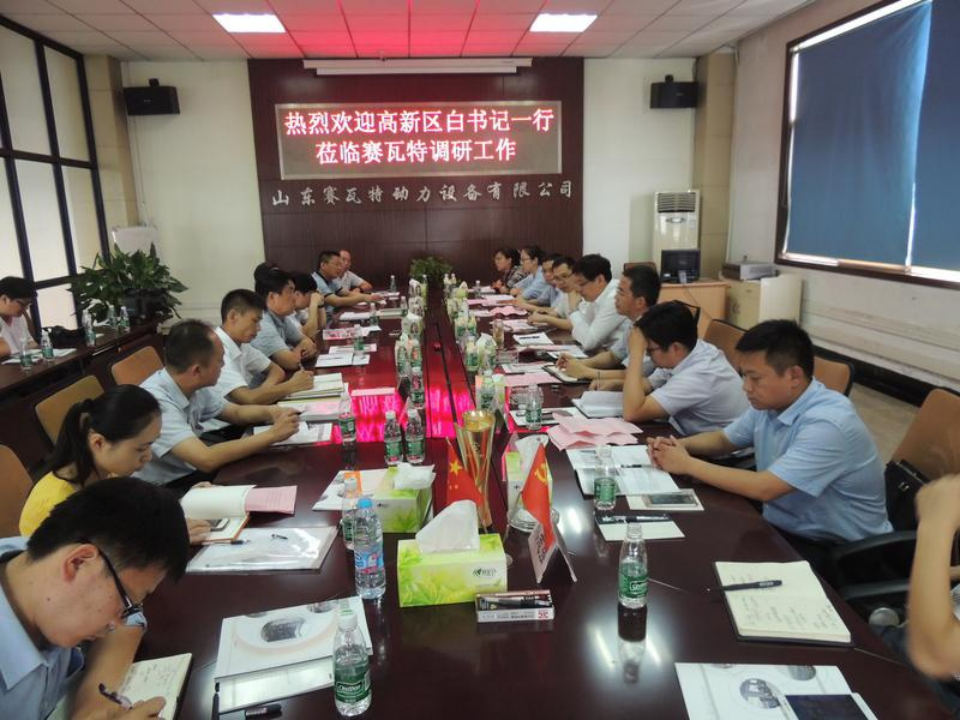 2016.6.14日上午,市委常委、济宁高新区党工委书记白山在此调研赛瓦特动力工作,并在赛瓦特召开企业调研会。党政办、经发局、招商局两个其他部门主要负责人一同参与调研,相关负责人陪同。